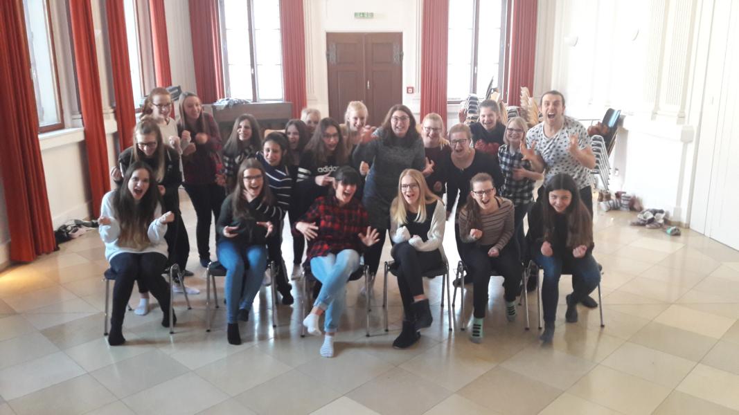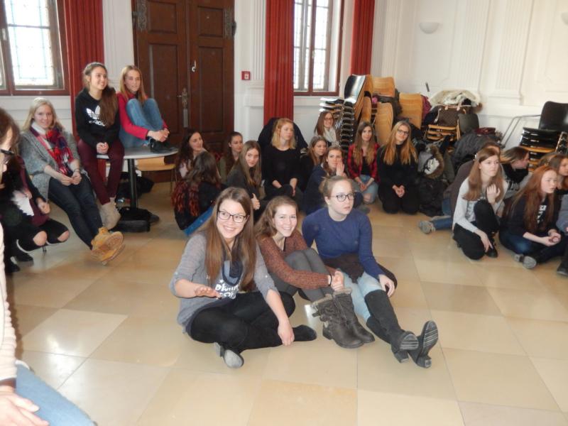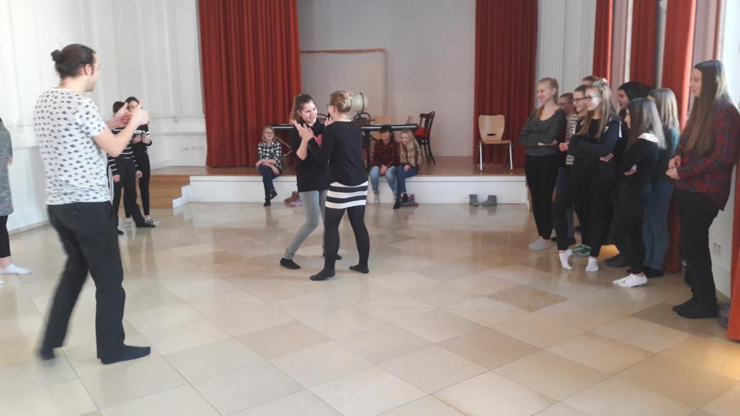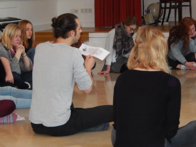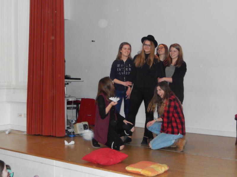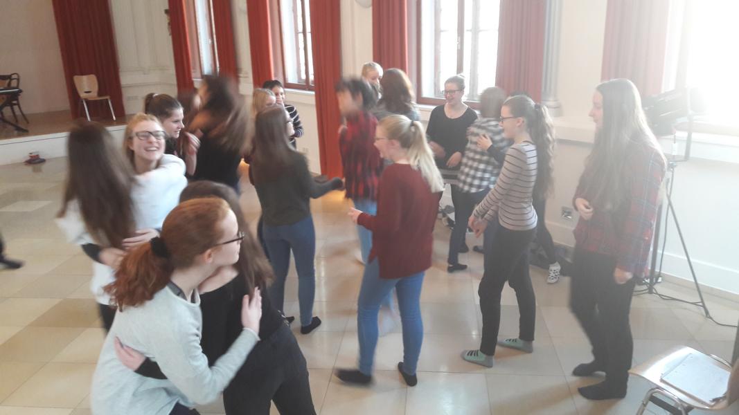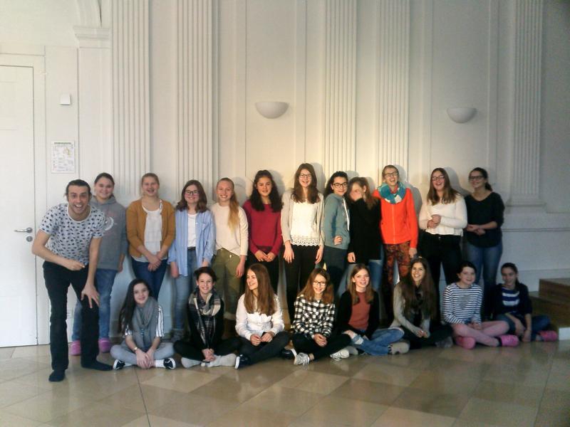 Theaterworkshop für unsere "Franzosen"13. Januar 2017Anlässlich des Deutsch-Französischen Tages am Sonntag, den 22. Januar, veranstaltete die Maria-Ward-Mädchenrealschule in Schrobenhausen an den beiden vorhergehenden Schultagen zum 2. Mal einen deutsch-französischen Theaterworkshop. Die Mädchen der Französischklassen durften zusammen mit dem Schauspieler Vincent Simon ihre schauspielerischen Talente entdecken. Zwei Tage lang wurde gelacht, geprobt, kommuniziert, gespielt und sich gemeinsam auf die Vorstellungen der individuell an das Sprachniveau angepassten Darstellungen auf Französisch vorbereitet. Um einen Eindruck von diesem tollen Erlebnis zu vermitteln, beschreiben die Schülerinnen diese Erfahrung wie folgt: "Anfangs waren wir sehr schüchtern. Dank Vincent sind wir jedoch alle etwas aus uns herausgekommen. Meiner Meinung nach sollte der Theaterworkshop mindestens einmal pro Jahr stattfinden." "Besonders gut hat mir gefallen, dass uns die Spiele noch näher gebracht haben und es keine Gruppenbildungen gab, keiner ausgegrenzt wurde." "Ich hätte nie gedacht, dass Französisch so viel Spaß machen kann und, dass man in der Schule soviel lachen kann." "Es war wirklich gut einmal einen echten Franzosen kennenzulernen.“ "Ich fand es sehr interessant und lustig! Die Zeit ist so schnell vergangen und ich habe mir durch die Spiele und Gesten viele Wörter merken können. Ich hoffe wir wiederholen das nächstes Jahr!" |