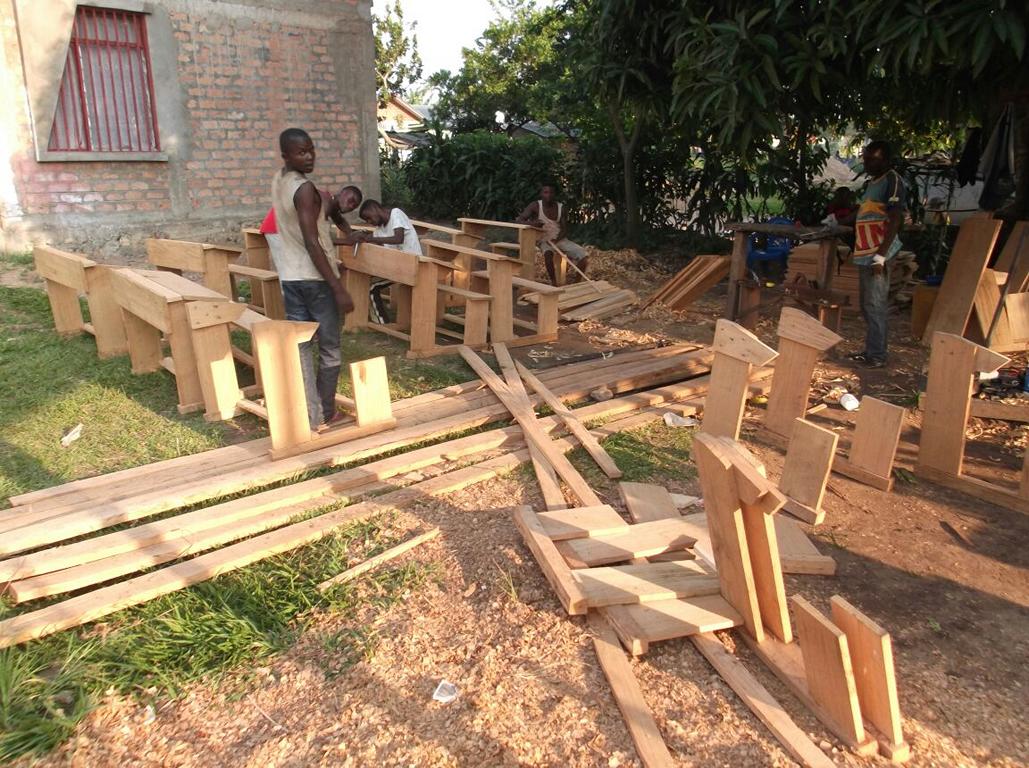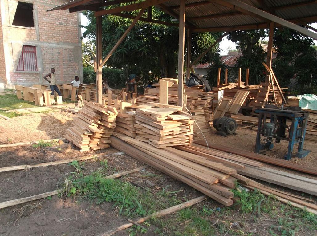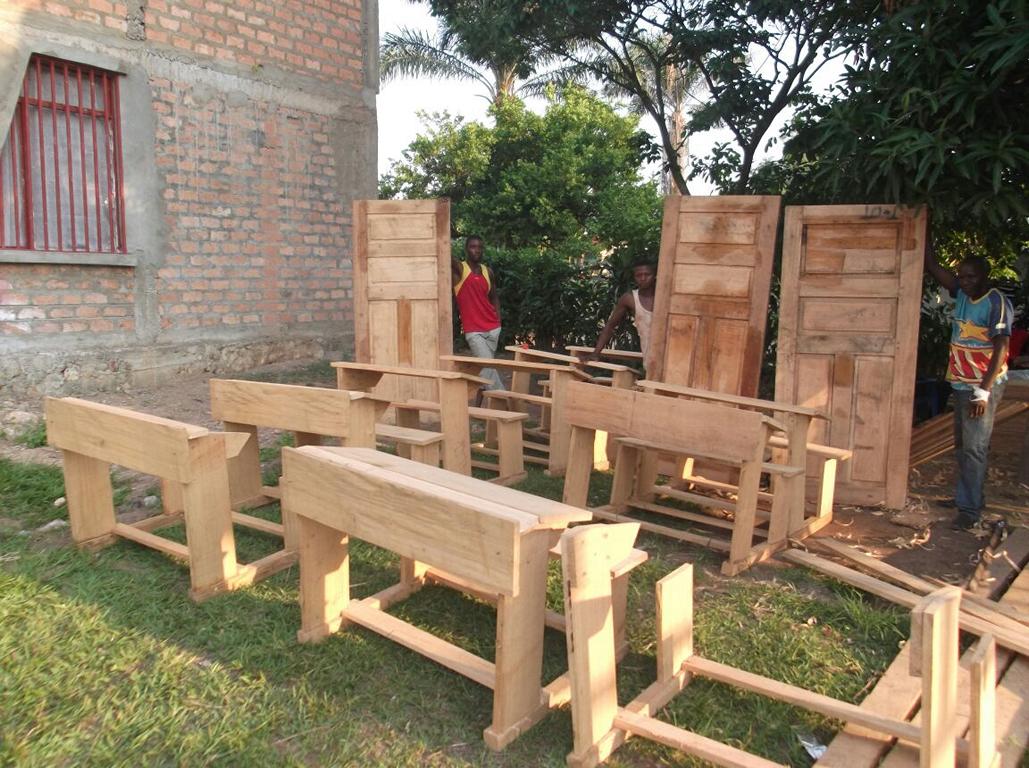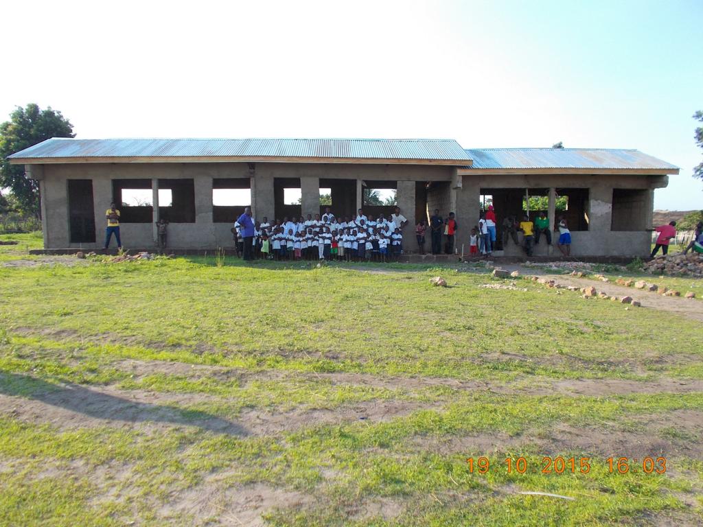 Voller Stolz präsentierten die Einheimischen das zweite neue Gebäude, in dem noch einige Schulbänke fehlen. Diese werden im 150 Kilometer entfernten Kingandu hergestellt und zerlegt nach Kizela transportiert. Eine Bank kostet 60,00 €.