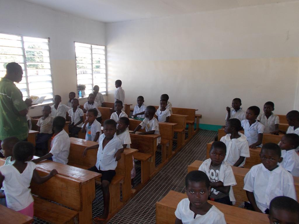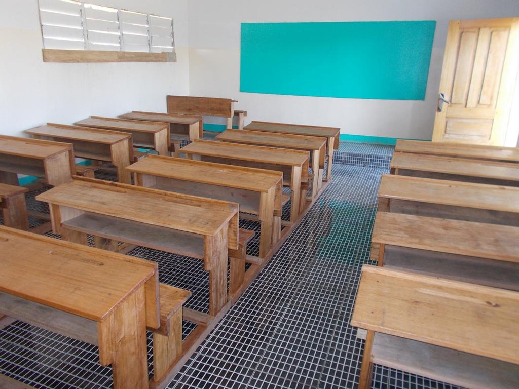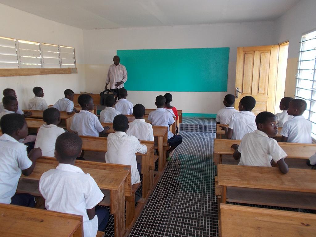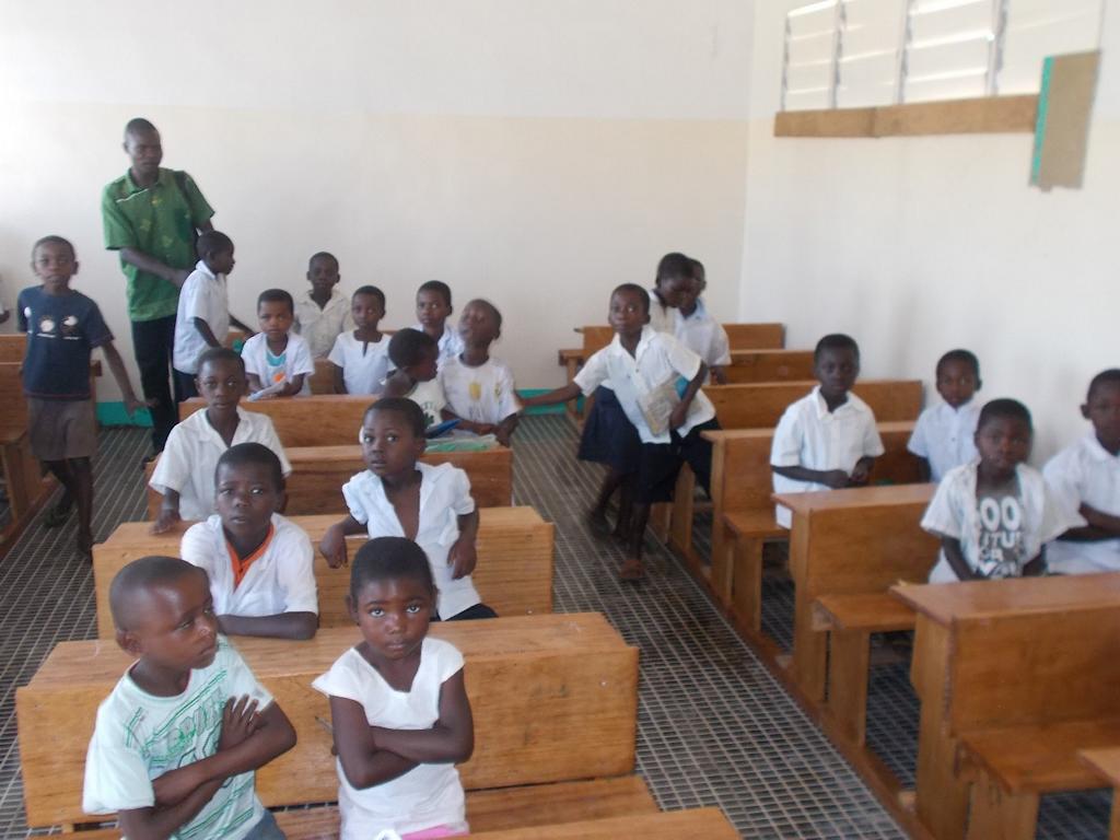 Voller Stolz präsentierten die Einheimischen das zweite neue Gebäude, in dem noch einige Schulbänke fehlen. Diese werden im 150 Kilometer entfernten Kingandu hergestellt und zerlegt nach Kizela transportiert. Eine Bank kostet 60,00 €.
