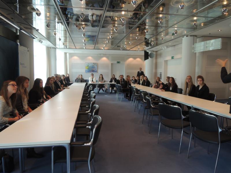 Besuch der Staatskanzlei und des Sozialministeriums1. Oktober 2015Und dann kam manches andersWie jedes Jahr nahmen Schülerinnen aus den 10. Klassen zu Beginn des Schuljahres am Programm Lernort Staatsregierung teil. Geplant war ein Besuch des Bayerischen Sozialministeriums und der Staatskanzlei in München. Schon am Eingang des Ministeriums wurden die Schülerinnen jedoch abgefangen und in das nahegelegene Institut für Schulqualität und Bildungsforschung, kurz ISB, umgeleitet, denn aufgrund der Flüchtlingsproblematik waren alle Konferenzräume belegt. Auch die Mädchen beschäftige das Thema Asyl und sie nutzten die Gelegenheit, direkt vor Ort viele Fragen zu stellen.Als sich die Gruppe dann nach dem Mittagessen in der Kantine des Ministeriums im Eingangsbereich sammelte, kam Staatsministerin Emilia Müller gerade von einer Veranstaltung zurück und die Schülerinnen hatten Gelegenheit, die Ministerin persönlich kennenzulernen. Darauf waren sie besonders stolz. Unsere Mädels dürfen den Kabinettsaal besuchen Presseraum der Staatskanzlei Im Hofgarten der Staatskanzlei Der riesige Kuppelsaal der Staatskanzlei Unsere Gruppensprecher Vroni & Johanna In der Orangerie (Gewächshaus) Im Büro von Frau Staatsministerin Emilia Müller, MdL |