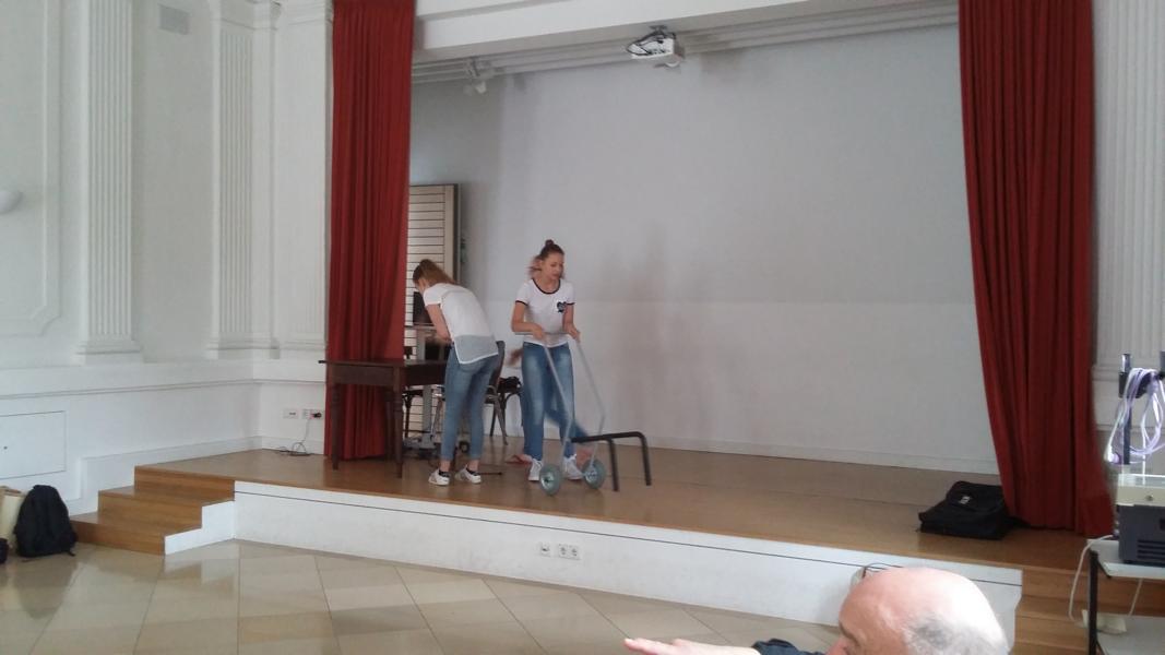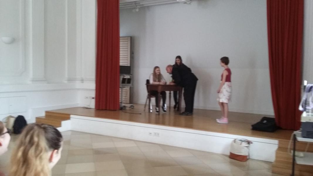Zerrissene Typen, Alte Frauen, Generäle, Verängstigte, Selbstbewusste, Erkältete und viele Charaktere mehr zauberten die Mitglieder der Theatergruppe auf die Bühne des Konzertsaals unter der Anleitung von Prof. Günter Köppel hervor, der mit viel Humor und großem theaterpädagogischem Geschick den Mädchen die Bedeutung des eigenen Körpers im SCHAUspiel nahebrachte.
