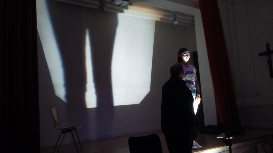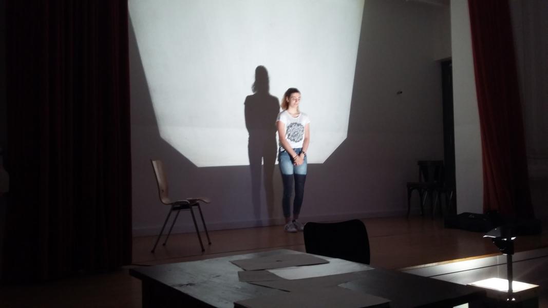 In einem dreistündigen Workshop wurde gegangen, geschlurft, marschiert und gestapft, mit Sprache und Ausdruck experimentiert und das Licht als wichtiges Hilfsmittel erforscht.