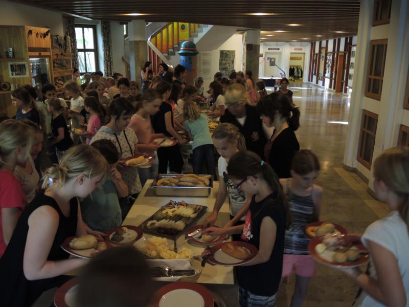 Schullandheim in Violau22. - 24. Mai 2017Drei spannende und ereignisreiche Tage verbrachten unsere fünften Klassen im Schullandheim Violau. Zahlreiche Attraktionen sorgten für volles Programm. Der Abenteuerspielplatz lockte in der Freizeit genauso wie das Lama-Gehege, mit den Biologie-Lehrerinnen wurde das Biotop erkundet und die berühmte Wallfahrtskirche faszinierte mit ihrer prachtvollen Rokokoausstattung. Hausleiter Christoph Mayer führte die Mädchen durch die Sternwarte und erklärte an verschiedenen Planetenmodellen das Zusammenspiel der Kräfte im Universum. Lagerfeuer, selbstgemachte Pizza und Essen in Bioqualität rundeten drei gelungene Tage ab. Natalie zog ihr eigenes Fazit: "Ich mache die fünfte Klasse einfach noch mal, dann kann ich nächstes Jahr wieder hier her kommen!" |