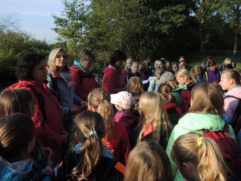 Pilgertag der der 5. Klassen23. September 2016Damit sich die einzelnen Gruppen besser kennenlernen, machten sich alle 5. Klassen in der zweiten Schulwoche mit ihren Klassenlehrern sowie Ulrike Sperrer von der Mittagsbetreuung auf einen ganz besonderen Weg – einen Pilgerweg. Über den Stadtwall und die Schulturnhalle gelangten wir auf verschlungene Pfade an der Paar entlang. Dort fanden die Kinder auch sogleich das Schild, das den Weg als Teil des „Jakobus-Pilgerwegs“ bezeichnet. An zwei Stationen hörten wir Gedanken zur Natur, unserem Leben und dem Weg, auf dem es vieles zu entdecken gab. Der Rückweg führte zu einer kleinen Überraschung: Auf dem Parkplatz hinter dem Finanzamt steht eine Kapelle, die den Maria-Ward-Schwestern gehörte. Dort hörten die Mädchen von Mose, der sein Ziel - das verheißenen Land – zwar noch sehen durfte, es jedoch niemals erreichte. Nicht an jedem Lebensziel kommt man an, dennoch ist es wichtig, immer wieder aufzubrechen, denn der Weg ist oftmals das eigentliche Ziel. Mit diesen Gedanken erreichte die Gruppe die letzte Station, den Anfangsgottesdienst der Jahrgangsstufe in der Frauenkirche. Ein bewegter, mal nachdenklicher, mal lustiger Pilgerweg fand in der Schulmensa bei einem gemeinsamen Mittagessen seinen Abschluss. „Ich glaub, heute Nachmittag gehe ich mit meiner Familie den Weg nochmal ab, damit die ihn auch sehen!“, lautete der Beschluss vieler begeisterter Fünftklässlerinnen. |